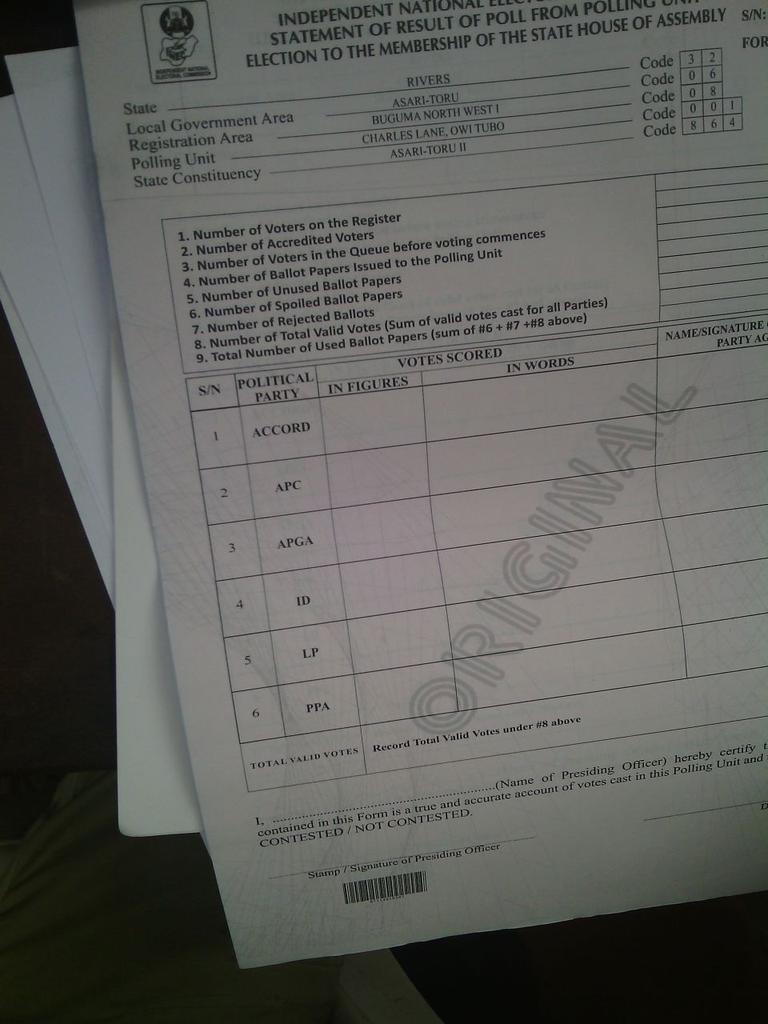 Imagine this! No PDP column created for national Assembly result sheet in Ward 8